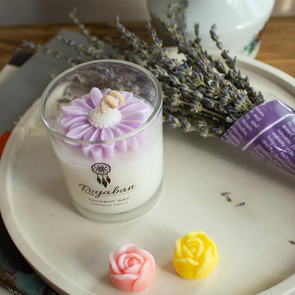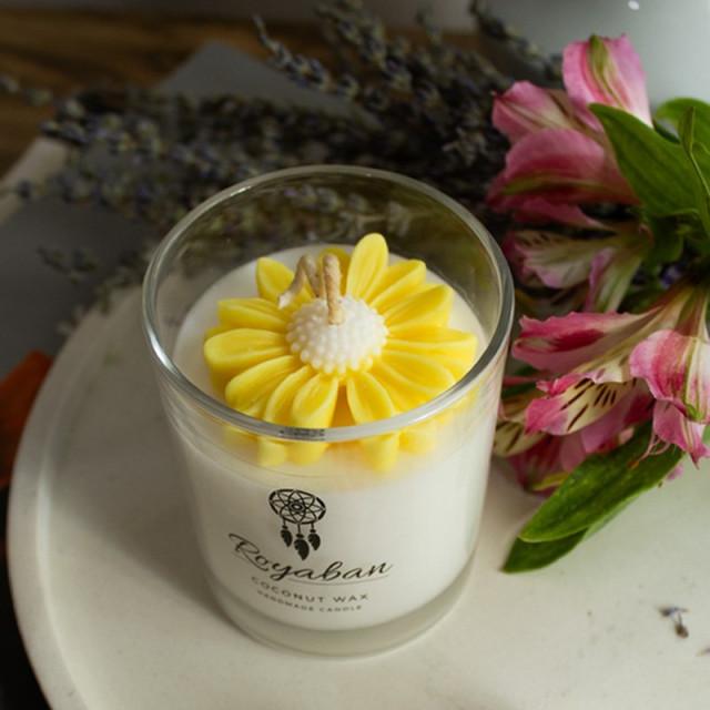 شمع دستساز با موم نارگیل و گل بابونه جذاب در وسط آن یک محصول زیبا و خلاقانه است که می‌تواند فضایی گرم و شاداب به خانه‌‌ی شما ببخشد. این شمع گیاهی با استفاده از وکس نارگیل درجه یک ساخته شده است و رایحه‌ای دلنشین و ملایم از نارگیل دارد. بوی نارگیل این شمع از خود وکس بوده و اسانس معطر به آن اضافه نشده است. زمان روشن شدن، پخش بوی ملایمی در محدوده‌ی اطراف شمع دارد و به همین دلیل گزینه بسیار مناسبی برای افرادی است که به بوهای تند حساسیت دارند. سوخت وکس نارگیل به دلیل گیاهی بود آن، بسیار تمیز بوده و فضای خانه را آلوده نمیکند. بنابرین اگر در منزل‌تان نوزاد یا حیوان خانگی دارید یا افراد خانواده‌ی شما آلرژی یا مشکلات تنفسی دارند، توصیه‌ی ما به شما استفاده از شمع های گیاهی مثل نارگیل و سویا میباشد. این شمع توسط مجموعه رویابان با بهترین متریال موجود در بازار تولید شده که امیدواریم از آن لذت ببرید.
